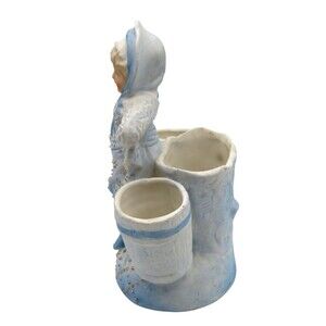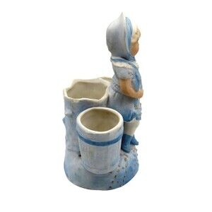 Vintage Bisque Porcelain Victorian Little Girl Blue Figurine Planter