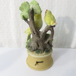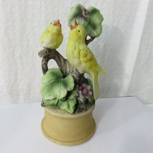 Vintage Bisque Porcelain Yellow Birds Music Box Figurine Made in Japan Working