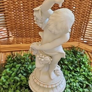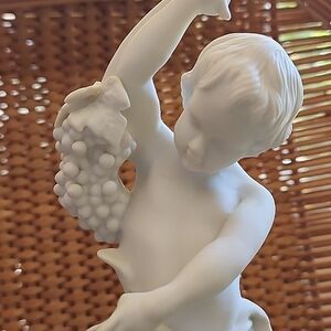 Vintage Bisque Porcelain Cherub Boy Holding Grapes Andrea By Sadek 1952