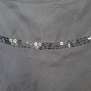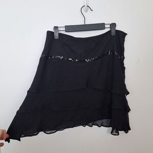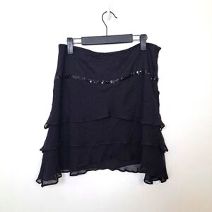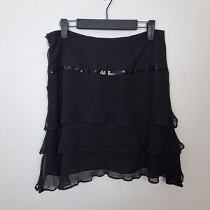 Vintage Black 100% Silk Tiered Ruffle Sequin Glam Y2K Gothic Mini Skirt Size 8