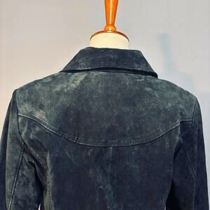 Vintage Black 100% Suede Leather Knee-Length Car Coat Jacket, Women's Size M