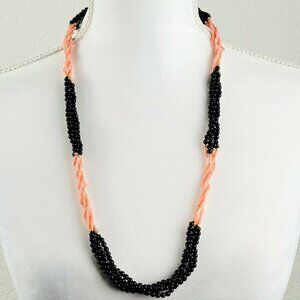 Vintage Black Agate & Angelskin Coral Multi-strand Necklace 28" 4Twisted Strands