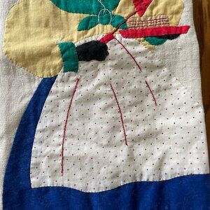 Selling a vintage off-white linen tea towel with hand stitched/embroidery of a Black American Woman. This is a beautiful tea towel representing Black Americana from the MCM.