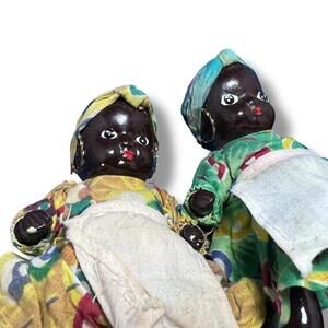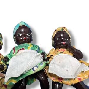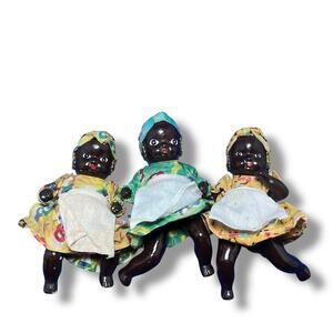 Vintage Black Americana Porcelain Dolls Trio – Colorful Dresses & Headwraps
