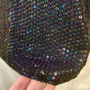 Vintage unbranded 100% silk beaded blouse from the 80s. The colors in this top are gorgeous in person! It has shoulder pads, but they could easily be removed. The top is in good condition, there are just a couple spots missing sequins (see last photo for reference). But with how many beads there are, it really isn’t noticeable.