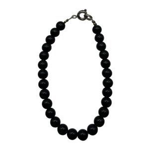 Elegant black beaded bracelet featuring a secure silver clasp. A timeless accessory to complement any wardrobe with effortless sophistication.