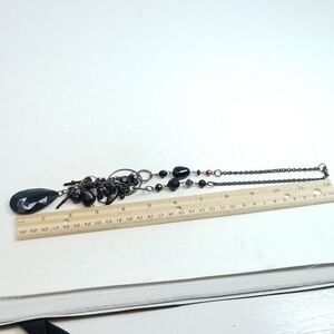 Vintage Black Beaded Chain Necklace, Drop Shape Pendant, Statment Moody Estate