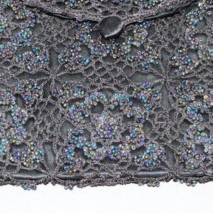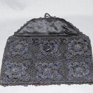 Vintage hand crocheted black beaded evening bag clutch purse