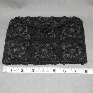 Vintage Black Beaded Evening Bag Clutch Purse One of a Kind