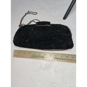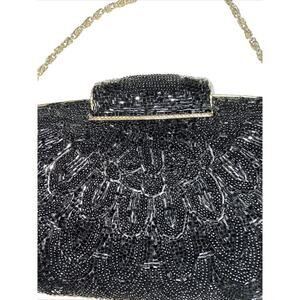 Classic black beaded vintage clutch with ornate front detail. Ideal for formal events, holidays, or night-out styling.
