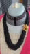 This stunning necklace features 24 strands of beautiful black seed beads complemented by a striking gold floral accent. Feel like a million bucks when you step out wearing this beauty. Measures 24". No call outs