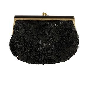 Vintage Black Beaded Sequin Evening Clutch Partners Mervyn’s Hong Kong