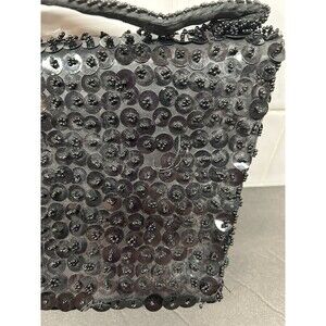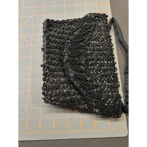 Vintage Black Beaded and Sequins Handbag Made In Hong Kong Evening Bag