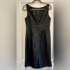Vintage Black Boat Neck Taffeta-Like Bow Front Cocktail Dress 12