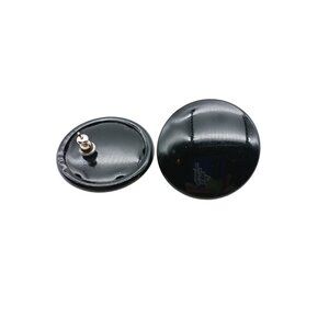These vintage black button clip-on earrings evoke a timeless elegance reminiscent of mid-century fashion. The sleek, polished design makes them a sophisticated accessory for a curated vintage look. Their classic round shape and deep black color offer a simple yet bold statement, ideal for those who appreciate retro style.