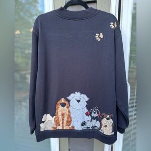 Vintage Black Button Up Jacket With Embroidered Paw Prints and Dogs