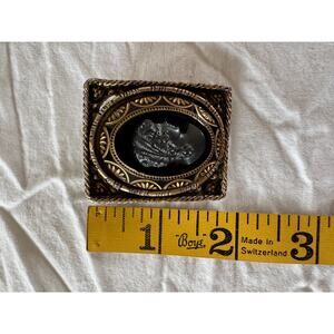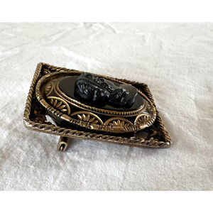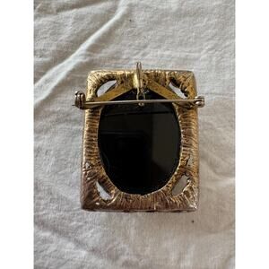 Vintage Black Cameo Woman Pin Brooch Pendant Square Gold Tone Carved Frame