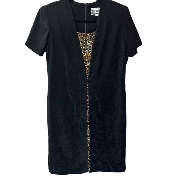 Vintage Black Cardigan Dress Leopard Print Mob Wife by Sheri Martin Size 12