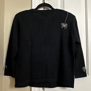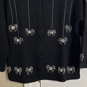 Black cardigan with beaded and sequined spiders and webs. Adorable sweater in great vintage condition, no known flaws. The buttons on the front are decorative, there are real buttons on the underside of the sweater. Size small, see pic for measurements. Thin shoulder pads for structure. Smoke-free, dog-friendly home. ๐Ÿ’• New to Poshmark? Sign up and use code THRIFTEDCORNER to save $10 on your first order! ๐Ÿ’• Keywords: Vtg, teacher, spooky, spooky season, cute Halloween, embellished