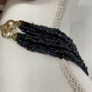 Vintage Black Carnival Glass Multi Strand Beaded Necklace 12 Strands