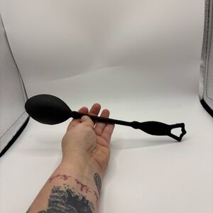 Elegant black cast iron spoon. Perfect for kitchen decor or use.