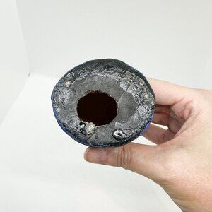 Vintage, handmade, hand painted redware pottery clay cat. Hallow, textured. About 6" tall x 2" round. Tip of hat was repaired when I purchased, otherwise general wear for age.