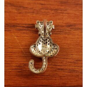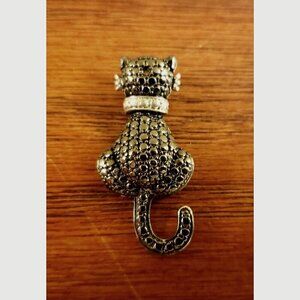 Vintage Black Cat Pendant with Faux Marcasite and Silver Tone Collar. See photo for measurements.