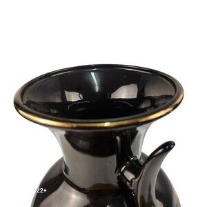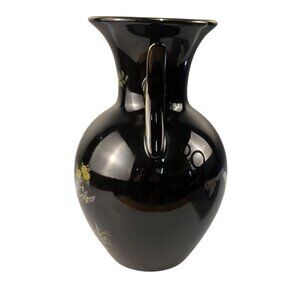 Vintage Black Ceramic Vase With Floral & Peacock Motif Gold Accents Decorative D