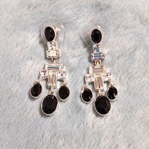 Vintage Black & Clear Rhinestone Pierced Dangle Earrings