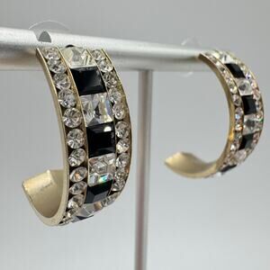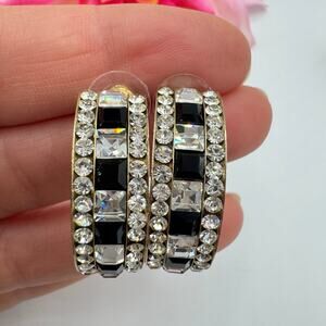 Vintage Black Clear Sparkle Dazzle Rhinestone Hoop Earrings Statement Runway Fun