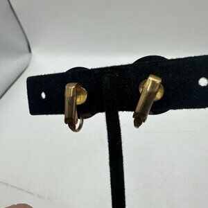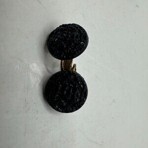 Vintage Black Clip-On Earrings With Textured Design & Brass Hardware