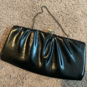 Vintage Black Clutch Snap Leather Bag Shoulder Purse Small Gold Chain