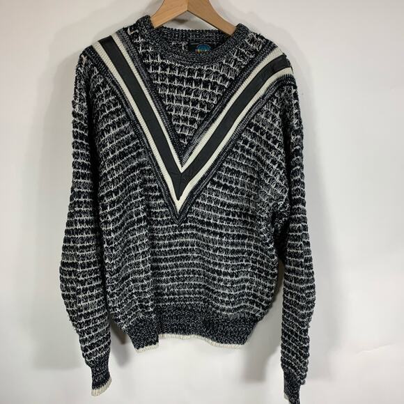 Vintage Black Cream Leather Trimmed 90s sweater 100% acrylic