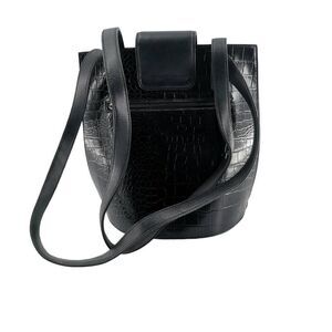 Vintage Black Croc-Embossed Leather Bucket Bag | Structured Silhouette