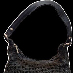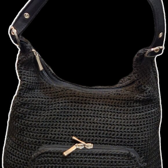 Vintage Black Crochet Woven Hobo Shoulder Bag - 90s Boho Style