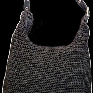 Classic black crochet/woven shoulder bag with a slouchy hobo silhouette. A versatile, lightweight bag perfect for a casual boho or 90s-inspired look.