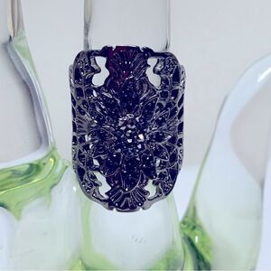 Vintage Black Crystal & Rhinestone Dark Metal Ring 1.25” Sz 7 Vintage Gorgeous