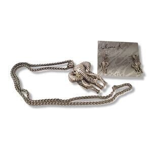 Vintage Katherine K. unworn with tags, African Elephant Round Black Crystal eyes, Sterling Silver Plate, the Chain is Stainless Steal 4mm Wheat-Link 30" Earrings, and Pendant set. 3D