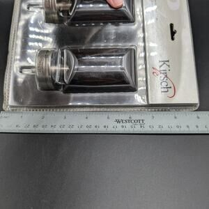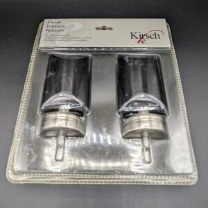 Vintage Y2K, Black Curtain Rod Finials. Kirsch, New old stock, Black, Screw finials that fit on a 1 3/8" rod. New in the package. Never used. The package is a little yellowed and a bit dirty from age.