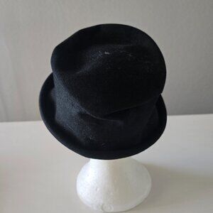 Vintage Black Dayton's French RoomFelt Hat with Slanted Brim & Vinyl Trim1960s