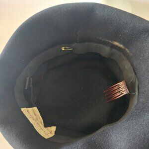 True vintage, purchased at a vintage convention but never worn by me. Made in Italy. Has two hair combs sewn inside to keep in place. Brim curls up and is bendable into the shape you like.