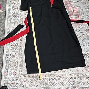 Vintage Black Dress Goth Witchcore Red Peekabo Black Sash Tie Flouce Sleeve