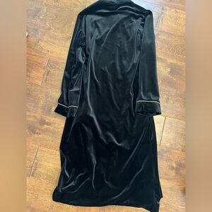 This is how your parents got here! Sophisticated black velvet dressing gown featuring elegant gold trim. Ideal for special occasions—or just to celebrate yourself! Treat day!