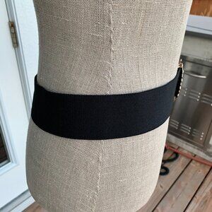 Vintage Black Elastic Statement Cinch Waist Belt Retro 80s Peacock Buckle Boho