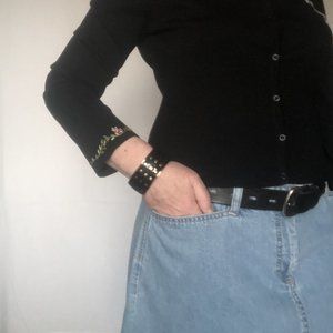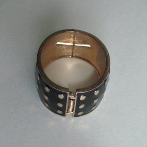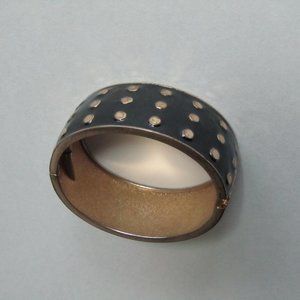 For Sale is Vintage Black Enamel Gold Dot Metal Hinged Oval Bangle Fashion Jewelry Bracelet