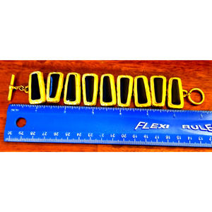 Vintage Black Enamel & Gold-Tone 9 Section Trapezoid Link Bracelet w T-Bar close