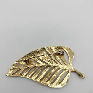 Vintage Black Enamel Leaf Brooch Pin Lapel Gold Tone