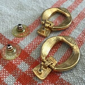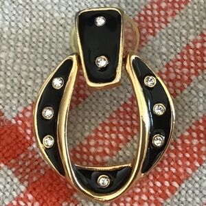Vintage Black Enamel & Rhinestone Earrings Gold Tone Pierced