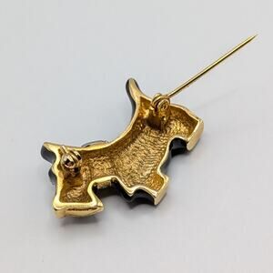 Vintage Black Enamel Scottie Dog Terrier Brooch Pin Rhinestone Bow Collar