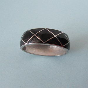 Vintage Black Enamel Silver Tone Metal Hinged Oval Bangle Jewelry Bracelet